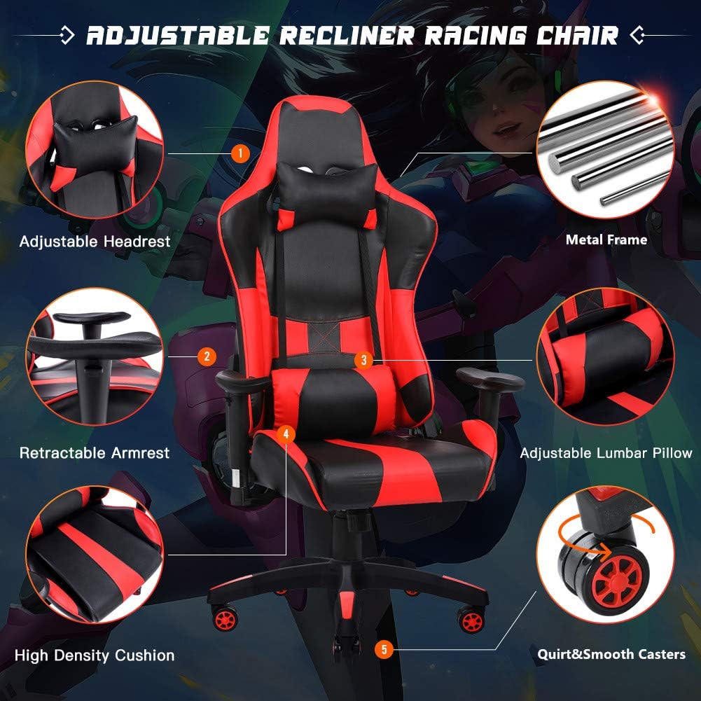 Amazon Com Giantex Massage Gaming Chair Massage Lumbar Cushion And Retractable Footrest Racing Style Ergonomic High Back Office Chair Adjustable Back Angle And Armrest Executive Computer Chair White Kitchen Dining from images-na.ssl-images-amazon.com