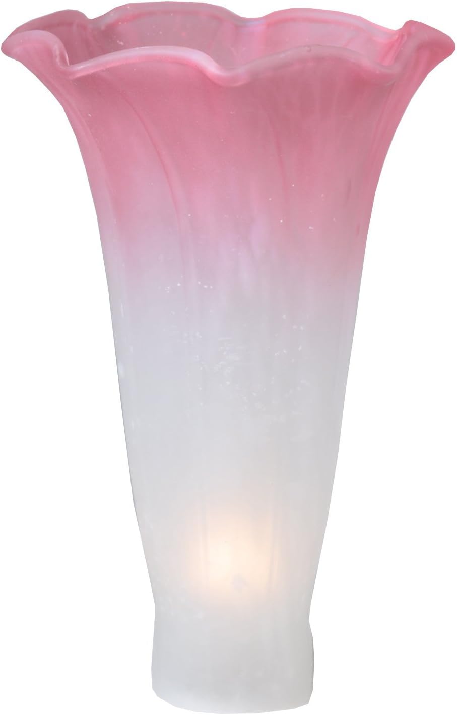 2 tiffany style lily flower lamp shade trumpet tulip white to pink mottled glass.